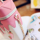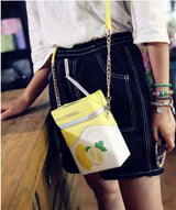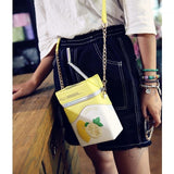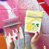 - A gorgeous , high quality, fully zippered strawberry milk (pink), or Lemonade (yellow), full size 3D milk box purse with gold hardware and long chain strap for easy carrying!
