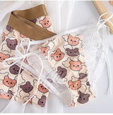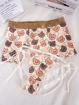 - Details: Accentuated with delicate lace trim and side ties for a customized fit, these panties and boxers blend comfort with cuteness. The gold elastic waistband adds a chic touch.