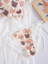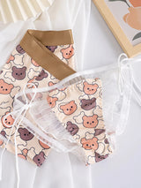 - Design: This adorable set features a playful teddy print scattered across a soft, creamy background, making everyday wear much more fun. The versatile design suits all, adding a touch of kawaii to your wardrobe.