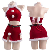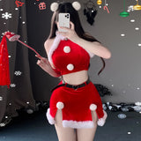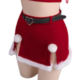 • ✨ Ho Ho Hotness: Embrace your inner Mrs. Claus with this flirty two-piece ensemble, featuring a super-soft crop top and skirt that scream Christmas cheer!