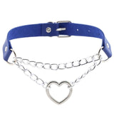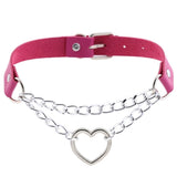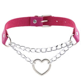 - This gorgeous thick vegan leather chained heart choker necklace has quality shiny silver hardware, belted buckle closure, and screams "I'm a naughty princess"!