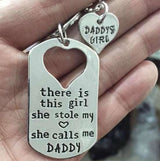• The keychain dog tag reads: "There is this girl she stole my heart she calls me daddy".