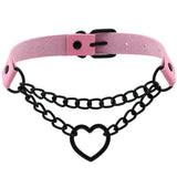 - This gorgeous thick vegan leather chained heart choker necklace has quality black hardware, belted buckle closure, and screams "I'm a princess"!