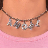- The pendant itself consists of a solid silver plated chain, and high quality glam letters with rhinestone embellishments.