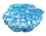 • These precious blue ruffle-butt bloomer shorts are made to cover your adorable padded and diapered bottom with a sweet girly aesthetic!