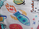- Featuring red trim with an adorable outer space rocket ship pattern all over!