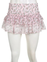 • Design: Adorned with delicate pink floral prints on a soft, pastel base, this skirt radiates a gentle, romantic vibe. The ruffles add a dimensional texture, enhancing its fairy-like appeal.