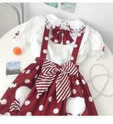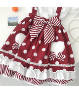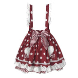 - This sweet polkadot suspener lolita skirt has so many luxurious details!