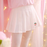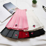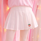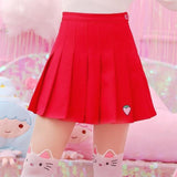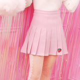- Satisfy your need for a perfect school girl tennis skirt with this beautiful strawberry pleated skirt!