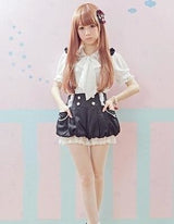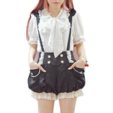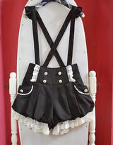 - An ultra kawaii pair of black & white bloomer style shorts with suspenders attached that criss cross in the back. Oh-so-sweet!