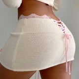 - Delicate Details: Featuring a lovely pink lace trim and dainty bow accents, this micro skirt brings a touch of romance to your wardrobe.