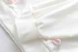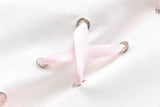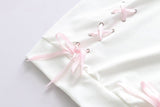 - Cute corset style lace up ties along the sides with sweet ribbons!