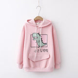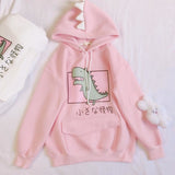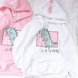 - This perfectly kawaii dinosaur hoodie is made of soft material, and in a a pastel pink, white, or black color scheme! Super kawaii!