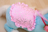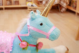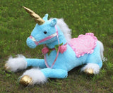 - With holographic holden hooves and unicorn horn, as well as blue ribbon reigns, saddle, and a fluffy tail, no details were missed on this beautiful mythological creature!