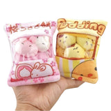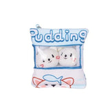 - Featuring an assortment of white & pink bunny rabbits, or yellow chickens/egg yolks in a sweet pudding plush bag!