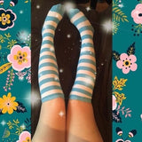 - These over the knee thigh high stockings are the cutest striped tall socks you'll own, and the comfiest! You'll want to live in them, and there's no reason not to!