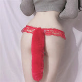 🌟 Kawaii Bushy Fox Tail Lace Thong 🌟