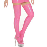 Step into a bold and vibrant look with these Candy Pink Latex Stockings! Perfect for adding a cute yet spicy touch to any outfit, these bubblegum-pink thigh-high socks are a statement piece for those who love kawaii fashion with a daring edge.