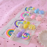 - You'll want to rock these deliciously sweet rainbow candy inspired cabochon hair clips every day!