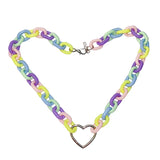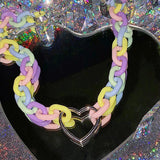 Colorful Design: Step into a world of kawaii charm with this chunky Pastel Chain Heart Collar. Featuring a delightful pastel palette, this necklace makes a striking statement.