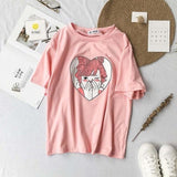 • This sweet pastel pink t-shirt is so comfy and cute with a blushy anime girl being absolutely precious in a heart frame! 💖