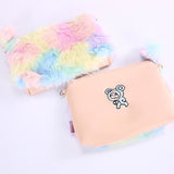 - An explosion of soft pastel fur covers the entire bag wit ha cute little matching pom pom on the zipper!