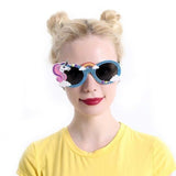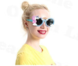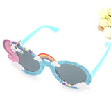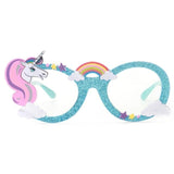 - These flashy and glittery unicorn sunglasses are the perfect addition to any little space outfit!