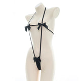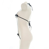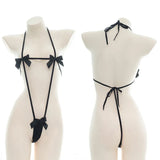 - π Micro bows strategically adorn this tiny black masterpiece, adding a touch of playful charm while keeping things oh-so-sexy. Perfect for those who love to make a statement at the beach or by the pool.