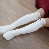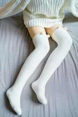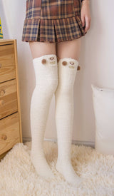 - These kawaii fuzzy white monkey thigh high stockings will have you floating in the sky. Warm, cozy, and so soft on your skin.