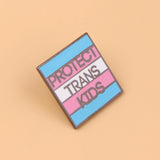 - Vibrant Charm: Embrace the power of pride with this stunning "Protect Trans Kids" enamel pin! Its vivid colors reflect the iconic pink and blue of the transgender flag, making a bold statement on any lapel.