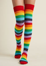 - These vibrant bright rainbow long thigh high socks are perfect for the young at heart, and for those wanting to show off their gay pride!