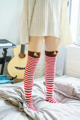 - These kawaii fuzzy striped bear thigh high stockings will have you feeling like a teddy bear. Warm, cozy, and so soft on your skin.