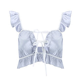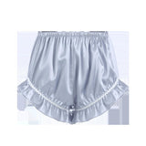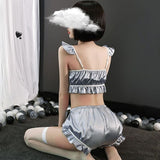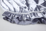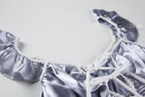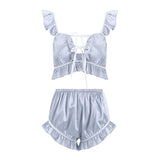 - This luxurious silky satin lace-up lingerie sleep set has gorgeous hand-details including ruffled trim, a silky bows, and a gorgeous lace-up peekaboo chest and matching bloomer shorts!