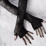 - These adorable creepy cute spider web fishnet gloves / gauntlets are the perfect fit for gothic babes, or cuties looking to dress up for halloween or just embrace their gothic lolita vibes!