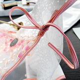 - Adjustable Satin Ribbon Ties: Golden satin ribbons on each side add a luxurious touch and allow for a customized fit.