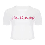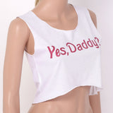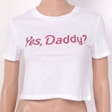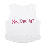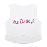 - These cute "Yes, Daddy?" cropped tank tops are perfect for both lounging around the house, or dressing up to make a super cute outfit!