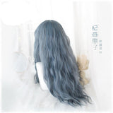 - This stunning dark blue long wavy lolita wig combines a sweet fringe with a stunning blue color with dark grey undertones in an ombre style! A gorgeous combination.
