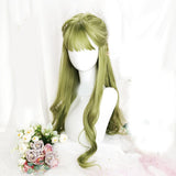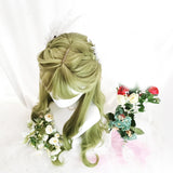 - This stunning long green lolita wig combines a sweet fringe with a beautiful muted green color that has endless styling options.