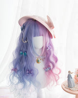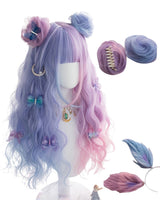 - This stunning two tone purple ombre long wavy lolita wig combines a sweet fringe, with or without cute hair bun & bunny ear accessories on top - Gorgeous!