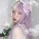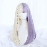 - This stunning split color lavender purple & white blond long lolita wig combines a sweet fringe with a stunning split lavender color! A gorgeous combination.
