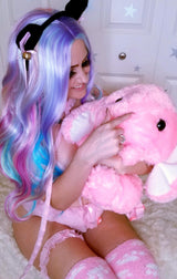 Kawaii Fashion Tip: Pair this adorable fluffy bunny backpack with a Matching Bunny Water Bottle, also available in our shop!