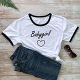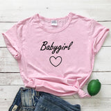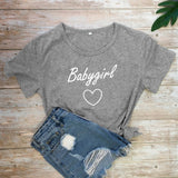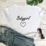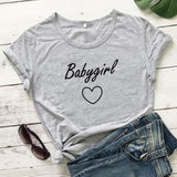 - With the text "babygirl" and a cute hollow heart graphic, it will quickly become your go to everyday tee to throw on with some comfy jeans!