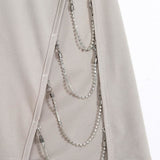 - Featuring a high slit along the thigh with gorgeous diamond rhinestone embellished chains for the perfect amount of bling and sparkle.