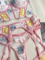 This Fairy Floral Garter Lingerie Set is a must-have for any lingerie lover looking to add a touch of whimsy and romance to their collection.
