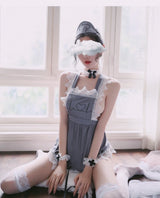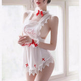 • This cheeky and skimpy white nurse apron style dress is so seductive, your partner won't be able to control themselves!