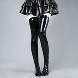 - โจ Sleek & Shiny: Dive into a world of glossy glamour as you slip into these thigh-high latex stockings. The shiny black finish is bound to make heads turn!
