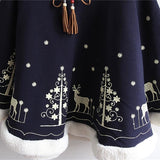 - Made of the highest quality thick knit fabric with a fleece lined hood that keeps you protected and warm, with cute youthful embellishments like a precious reindeer and Christmas tree print along the bottom with snow falling, and sweet vegan leather native inspired lace-up bow on the front! .
